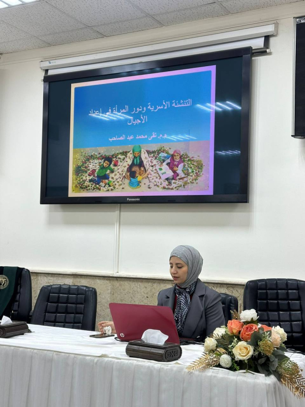 أقام المعهد العالي لتشخيص العقم والتقنيات المساعدة على الإنجاب في جامعة النهرين ورشة عمل بعنوان: “التنشئة الأسرية ودور المرأة في إعداد الأجيال”، أُلقيت من قبل المدرس المساعد تقى محمد عبد الصاحب.