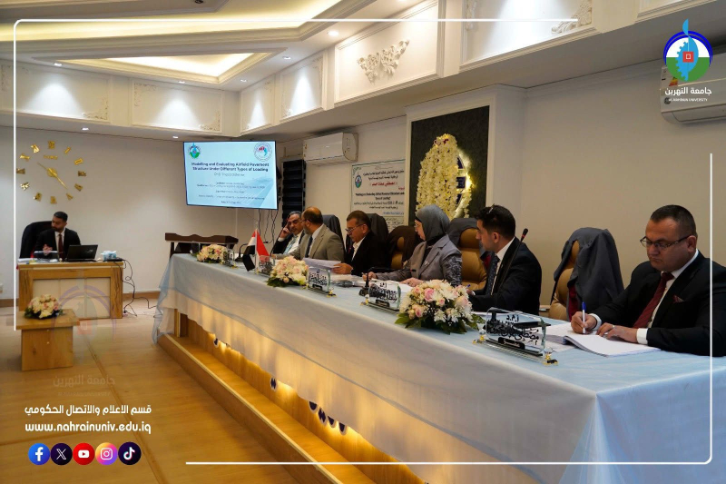 ناقشت كلية الهندسة في جامعة النهرين أطروحة الدكتوراه الموسومة “نمذجة وتقييم تطوير هياكل رصف المطارات باستخدام مادة CONSOIL تحت أنواع مختلفة من الأحمال” للطالب مصطفى عماد أحمد من قسم الهندسة المدنية، بإشراف السيد مساعد رئيس الجامعة للشؤون الإدارية الأستاذ الدكتور علاء حسين عبد.