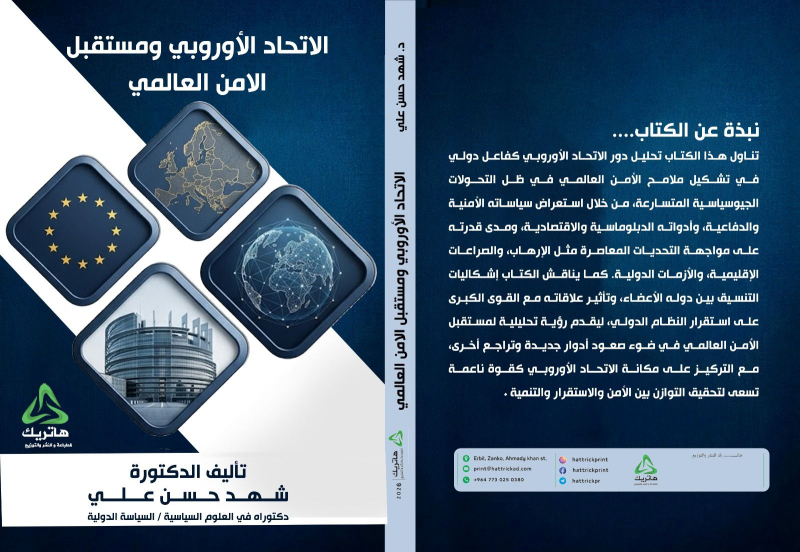 صدر للدكتورة شهد حسن علي، التدريسية في كلية العلوم السياسية، كتاب علمي بعنوان “الاتحاد الأوروبي ومستقبل الأمن العالمي”، تناول تحليل دور الاتحاد الأوروبي بوصفه فاعلًا دوليًا في تشكيل ملامح الأمن العالمي في ظل التحولات الجيوسياسية المتسارعة.