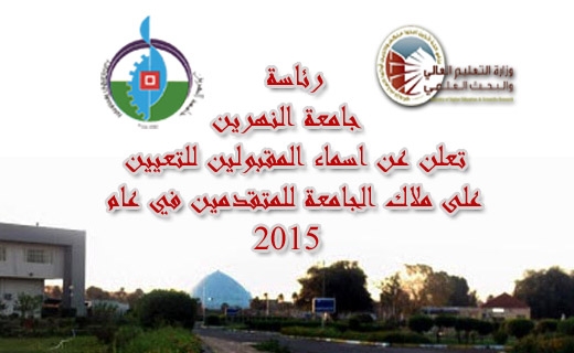 نظراً لحصول مصادقة معالي الوزير على محضر لجنة التعيينات المركزية بجامعتنا لعام 2015 ، بموجب كتاب وزارة التعليم العالي والبحث العلمي / الدائرة القانونية والأدارية / قسم الموارد البشرية / شعبة التوظيف والملاك ذي العدد ق/4/2/18834 المؤرخ في 17/10/2016 .