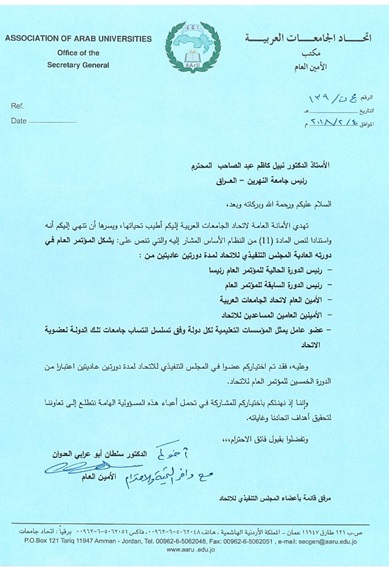 ممثلا عن العراق رئيس جامعة النهرين الأستاذ الدكتور نبيل كاظم عبد الصاحب يشارك في اجتماعات الدورة الحادية والخمسين للمؤتمر العام لاتحاد الجامعات العربية في رحاب الجامعة الإسلامية في بيروت