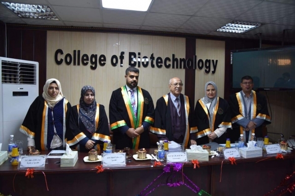 ناقشت رسالة ماجستير في جامعة النهرين، طرق انتاج وتنقية البروتيز من العزلة المطفرة لبكتيريا الزائفة الزنجارية للطالب حسين عواد حسين.