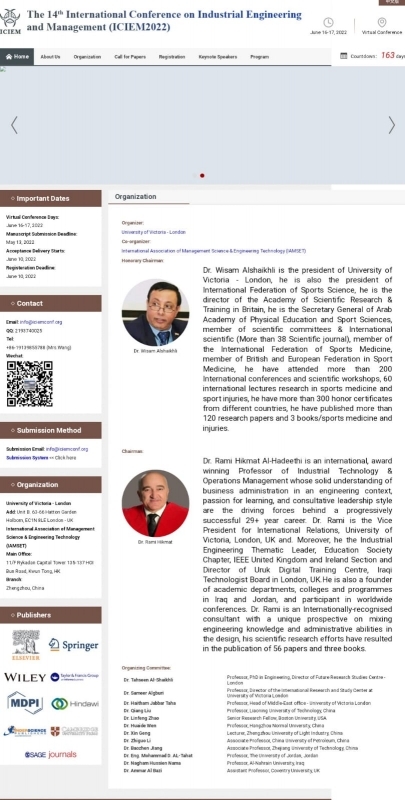 شاركت عميدة كلية اقتصاديات الاعمال في جامعة النهرين الاستاذ الدكتور نغم حسين النعمة، في عضوية اللجنة التنظيمية للمؤتمر الدولي الرابع عشر في الهندسة الصناعية والادارة المقام في جامعة فكتوريا في المملكة المتحدة في حزيران المقبل .