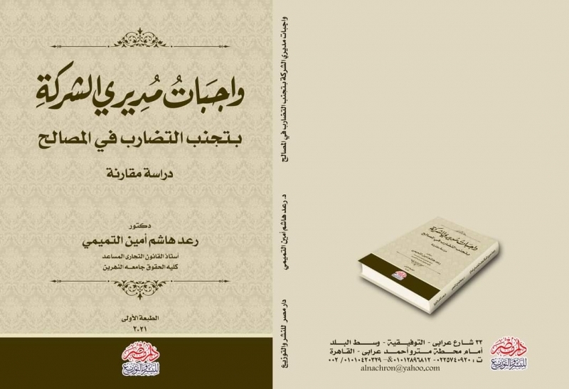 نشر مدير قسم الشؤون القانونية في رئاسة جامعة النهرين الاستاذ المساعد الدكتور رعد هاشم امين كتاب مؤلف من ٥٠٠ صفحة حول واجبات مديري الشركات لتجنب التضارب في المصالح في دار مصر للنشر والتوزيع