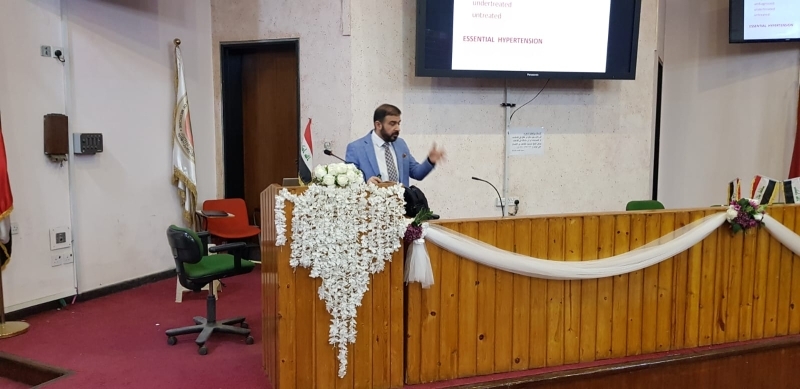 حيث ألقى الندوة الاستاذ الدكتور ( رافد بشير الطويل) تضمنت الندوة شرح مفصل عن ارتفاع ضغط الدم الحاد والذي يشكل خطورة عالية على اعضاء الجسم وتطرقت الندوة حول تشخيصها السريري والية حصولها والفسلجة المرضية لها واسبابها وطرق تشخيصها ومعالجتها .