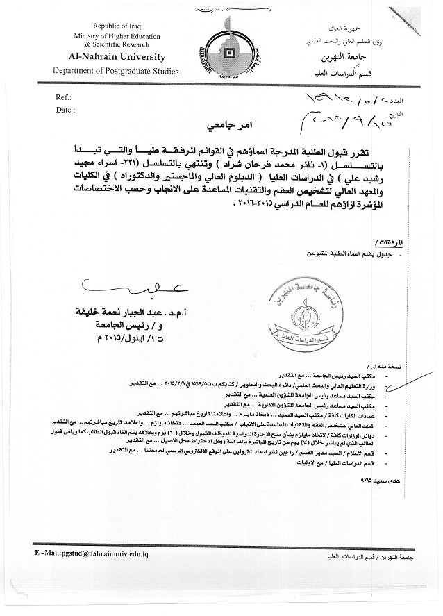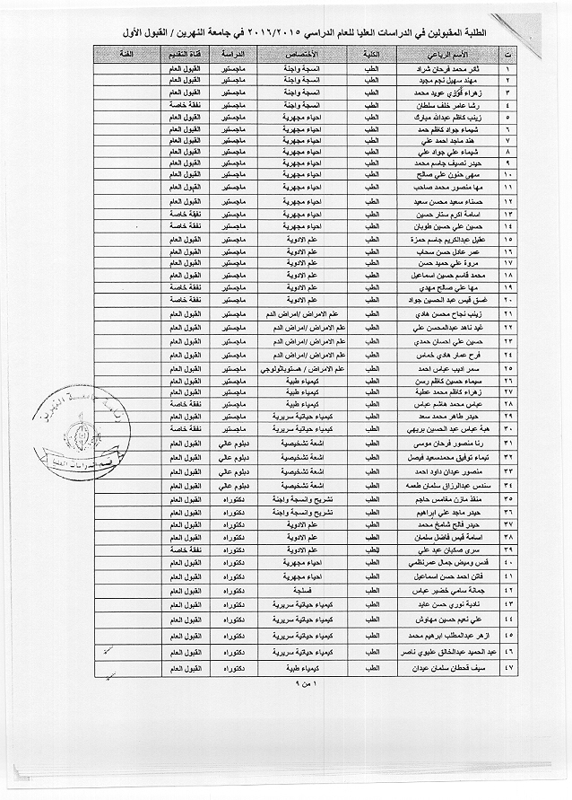 أضافه wvpadmin في اثنين, 09/21/2015 - 23:48 اعلان اسماء المقبولين للدراسات العليا في جامعة النهرين يمكن تحميل الملفات من الروابط ادناه المرفقات: scan0220.jpg scan0221.jpg scan0222.jpg scan0223.jpg scan0224.jpg scan0230.jpg scan0231.jpg scan0225.jpg scan0226.jpg scan0227.jpg scan0228.jpg scan0229.jpg