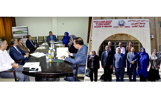 تواصلا مع نهج الجامعة في خدمة العلم والمجتمع حضر عميد كلية الطب في جامعة النهرين الاستاذ الدكتور علاء غني حسين اجتماع في وزارة التعليم العالي والبحث العلمي بحضور وكيل الوزارة لشؤون البحث العلمي ورئيس جهاز الاشراف والتقويم العلمي ومدير عام الدائرة المالية فضلا عن عمداء كليات الطب في العراق .