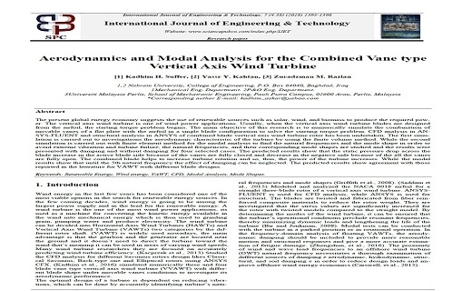 نشرالتدريسي في قسم الهندسة الميكانيكية المدرس الدكتور كاظم حسين صفر والتدريسي في قسم هندسة الاطراف والمساند الصناعية المدرس الدكتور ياسر يعرب قحطان في المجلة العالمية للهندسة والتكنولوجيا التي تقع ضمن مستوعبات سكوباس بحثاً بعنوان"تحليل الديناميكا الهوائية والشكل لتوربين رياح نوع المحور الرأسي ذو ريش مركبة من شكل جناح مع صفائح مسطحة متحركة"