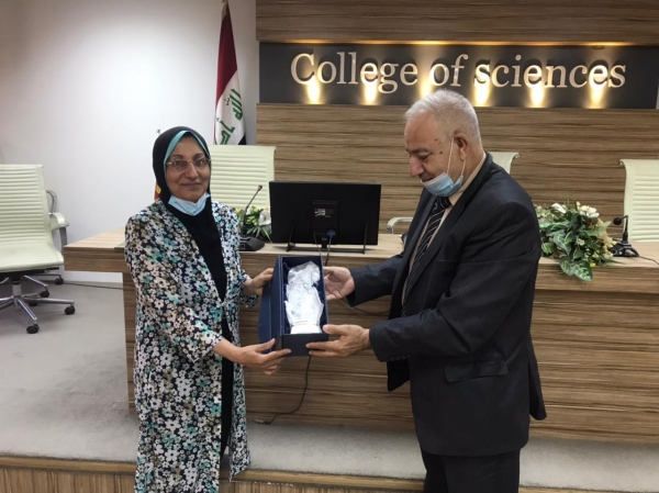 تضمنت الجلسة تكريم المدير الفني شيماء جاسم محمد، بشهادة تقديرية ودرع الكلية بمناسبة قرب موعد إحالتها على التقاعد حيث أشاد المجلس بالجهود المخلصة التي بذلتها الموظفة من أجل رفع اسم الكلية وتقدمها متمنين لها دوام الصحة والتوفيق في حياتها .