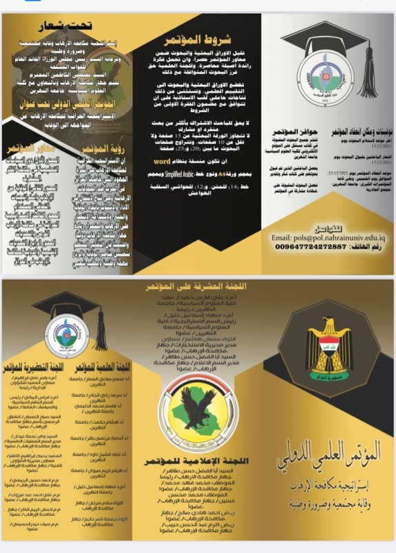 على بركة الله وتحت شعار " استراتيجية مكافحة الارهاب وقاية مجتمعية .. وضرورة وطنية"تقيم كلية العلوم السياسية - جامعة النهرين بالتعاون مع