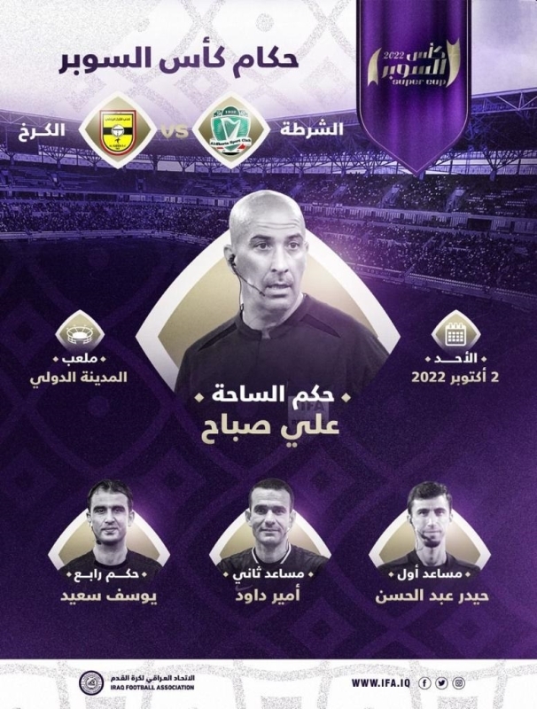 في افتتاحيه الموسم الكروي الجديد في العراق وبقيادة الحكم الدولي م. م . علي صباح التدريسي في قسم النشاطات الطلابية في جامعة النهرين أحرز فريق نادي الشرطة (بطل الدوري الممتاز) كأس السوبر العراقي لكرة القدم الموسم 2022-2023 بعد تحقيقه الفوز على منافسه فريق نادي الكرخ (بطل كأس العراق) بنتيجة 1-0. قي مباراة أحتضنها ملعب المدينة الدولي في العاصمة بغداد .
