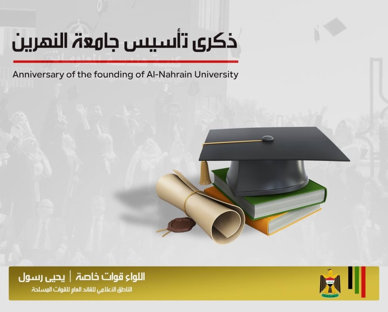 هنأ وزير الدفاع السيد ثابت محمد العباسي أسرة جامعة النهرين متمثلة برئيسها الأستاذ الدكتور علي عبد العزيز الشاوي واساتذتها وكوادرها وطلبتها كافة، بأحر التهاني واجمل التبريكات بمناسبة ذكرى تأسيسها. العباسي وفي تهنئة له على موقع وزار الدفاع قال: "نحن اليوم اذ نستذكر تأسيس هذه الجامعة العريقة لابد لنا من ان نشيد بـ(٣٦) عاماً من العطاء المستمر والمسيرة المشرفة والحافلة بالإنجازات العلمية والأكاديمية، حيث خرجت هذه الجامعة الألوف من الطلبة الذين كان لهم دور كبير في خدمة العراق". وأضاف العباسي تمنيه لجامعة النهرين دوام العطاء والتقدم خدمة للمسيرة التعليمية في بلدنا العزيز.