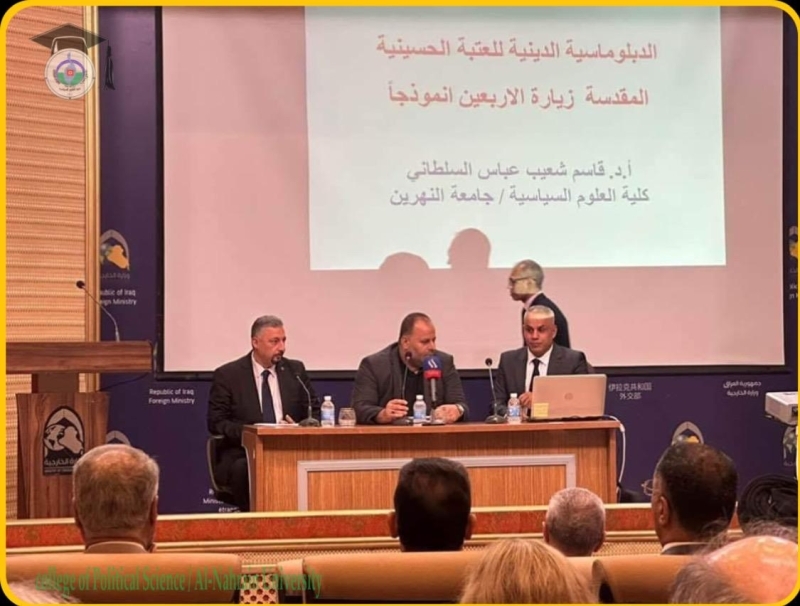 شارك التدريسي في قسم النظم السياسية في كلية العلوم السياسية بجامعة النهرين الأستاذ الدكتور قاسم شعيب عباس في الملتقى الثقافي "الدبلوماسية الدينية والثقافية" الذي عقده مركز الاعلام الدولي التابع لقسم إعلام العتبة الحسينية المقدسة بالتعاون مع وزارة الخارجية.