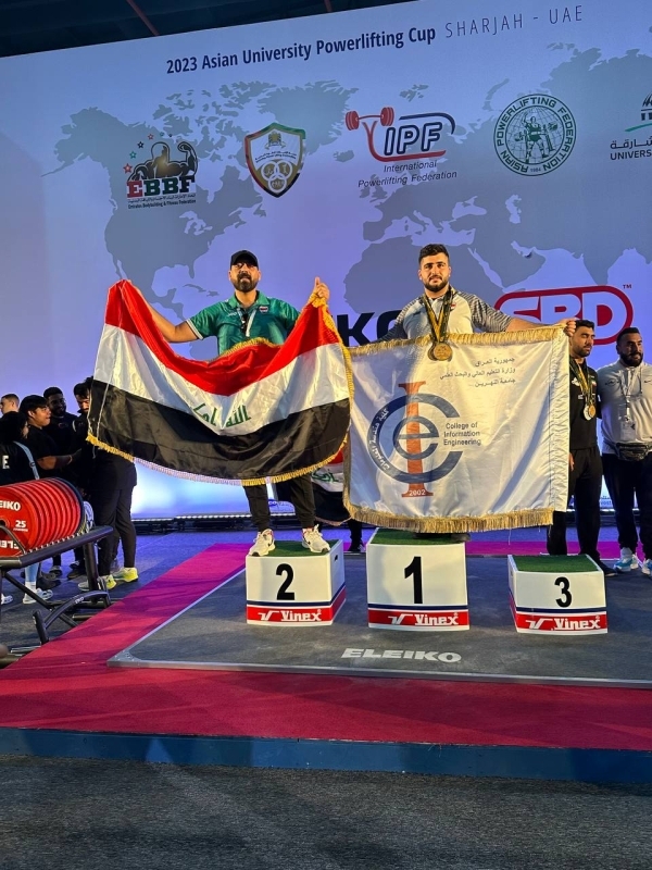 قسم النشاطات الطلابية في رئاسة الجامعة أوضح ان اللاعب الدولي محمد عماد رشيد أحد طلبة المرحلة الرابعة في قسم هندسة المعلومات والاتصالات مثل جامعة النهرين بقيادة المدرب الرياضي حيدر طالب صادق و بالتنسيق مع الإتحاد العراقي للقوة البدنية.
