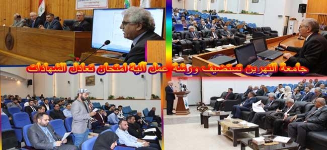 استضافت جامعة النهرين ورشة العمل التي اقامتها دائرة البعثات والعلاقات الثقافية في وزارة التعليم العالي والبحث العلمي تحت عنوان ألية امتحان تعادل الشهادات لخريجي كليات المجموعة الطبية من الجامعات الاجنبية خارج العراق .